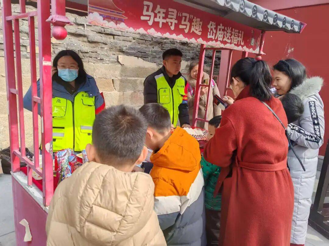 活动现场,许多游客正在挑战背诵孔子、李白、杜甫等历代与泰山相关的名人诗作,游客只需参与活动,就能免费领取一份岱庙主题打卡拼图,开启这场文化寻宝之旅。若你腹有诗书,完整背诵一首古诗,便能收获岱庙定制明信片、文化书签各1张,还有2张寓意吉祥的福字带回家。要是你才华横溢,累计背诵任意5首古诗,丰厚的奖励更是让人心动不已:2026年全年法定节假日免费入园凭证,让你未来一年随时畅游岱庙;非遗拓印体验,带你感受传统技艺的独特魅力;岱庙马年专属挂件、定制中性笔和古风折扇,每一件都精致独特,充满文化韵味。同时,凭借活动一中获得的打卡拼图提示,游客们化身“寻马侦探”,在岱庙内仔细搜寻与“马”相关的文物和景观元素。